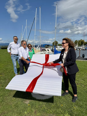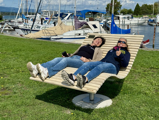 En souvenir de notre anniversaire, une chaise longue en bois unique, résistante aux intempéries et pivotante, a été inaugurée en présence de la maire et remise à la ville de Morat. Il s'agit d'un cadeau à nos clients et au grand public. De plus, nous avons pu verser un don provenant des courses publiques à la Fondation du district du Lac pour adultes handicapés (SSEB ).